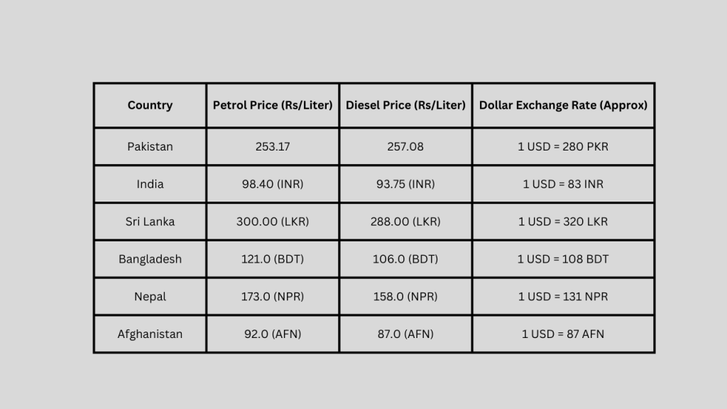 Fuel price comparison in South Asia